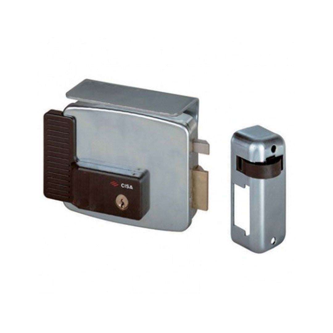Con cilindro esterno fisso da Mm. 55 di lunghezza. Scrocco autobloccante elettrificato 12V. Completa di tettuccio protettivo e sottobocchetta. Scatola Mm. 128x106. Bocchetta Mm. 40x100. In acciaio zincato. In dotazione: 3 chiavi piatte, 1 bocchetta e viti di fissaggio.
