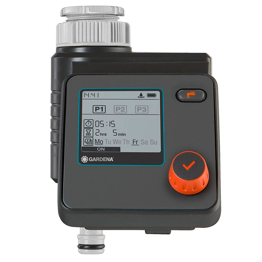 Con il computer per irrigazione Select di GARDENA l’irrigazione può essere programmata in modo flessibile e personalizzato. È possibile creare fino a tre programmi diversi e indipendenti. Il computer funziona a batteria, viene collegato direttamente al rubinetto dell’acqua e può essere utilizzato facilmente mediante un interruttore rotante e a pressione per la selezione dei dati e la conferma. Grazie al display LCD ben leggibile le impostazioni sono visibili a colpo d’occhio. L’unità di comando resistente alle intemperie è rimovibile. Il computer per irrigazione Select può essere utilizzato in combinazione con il tester per umidità di GARDENA.