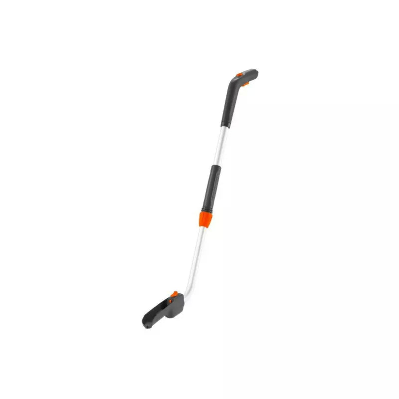 Il set con manico telescopico e ruote GARDENA aiuta a tagliare i bordi del prato o le piante tappezzanti con precisione in posizione eretta, senza chinarsi. Il manico può essere montato sulle forbici a batteria per erba con pochi gesti grazie all’innesto rapido senza cavo. L’impugnatura ergonomica può essere tenuta perfettamente in mano durante il lavoro e permette di comandare l’apparecchio dall’alto.